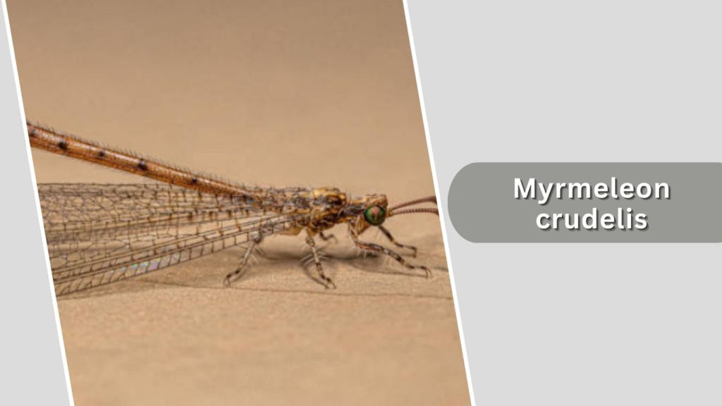 Myrmeleon crudelis is a lesser-known antlion species found mainly in parts of Asia. Like other members of the genus Myrmeleon, it is known for its pit-building larvae and ambush hunting style. Although not as commonly observed as some species, it follows the same fascinating antlion lifestyle.