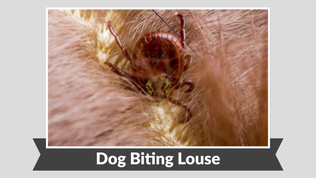 The scientific name of the dog biting louse is Trichodectes canis. It belongs to the group of chewing lice and is also known for acting as an intermediate host of the dog tapeworm (Dipylidium caninum).